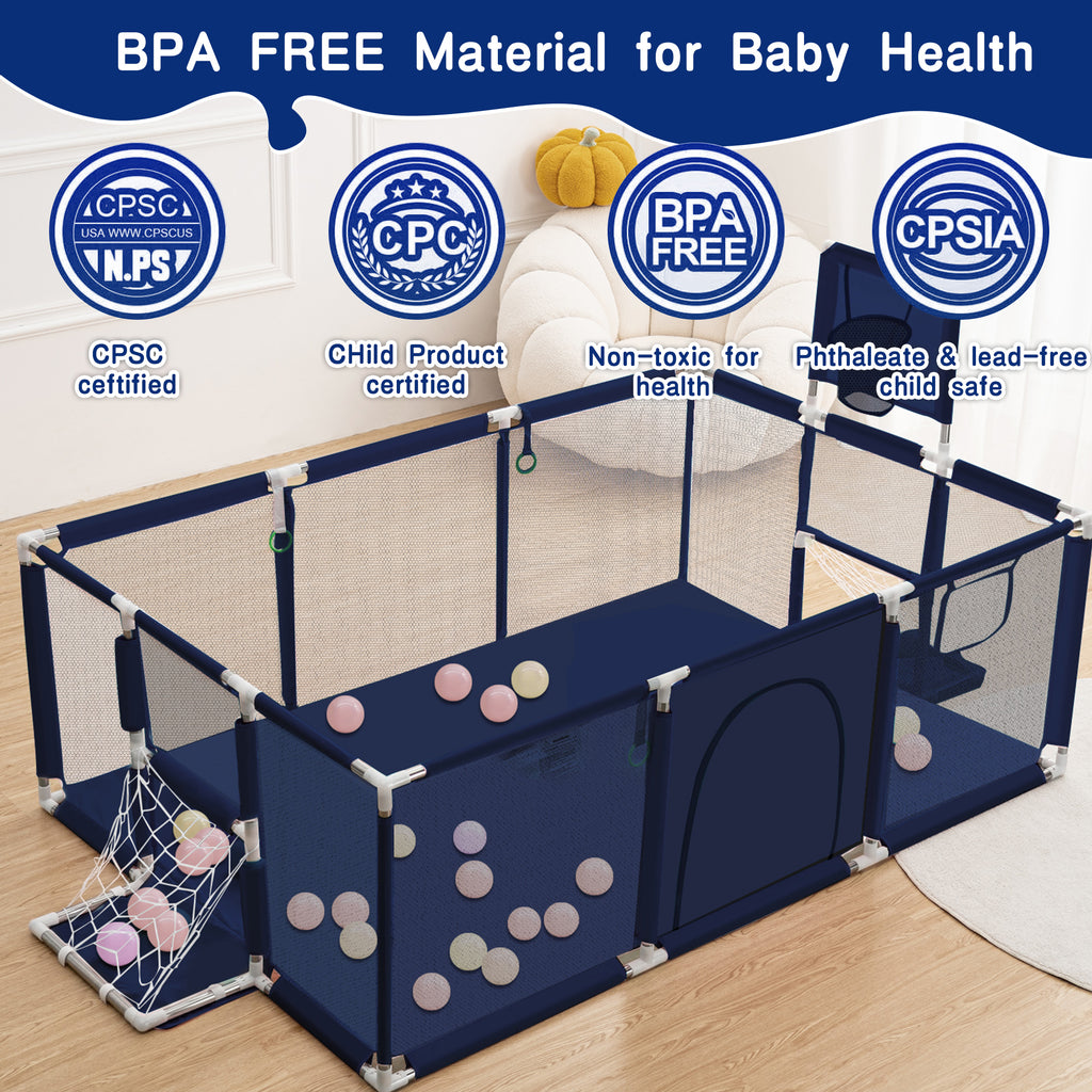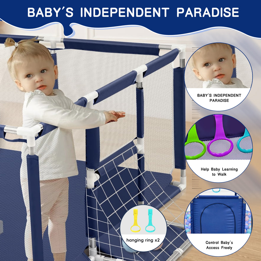 Extra Large Baby Playpen, Big Play Pens for Babies and Toddlers, Gap-Free, Climb-Proof Baby Playards for Indoor Fun, Baby Gate Playpen with Zippered Door and Storage Bag(Blue)