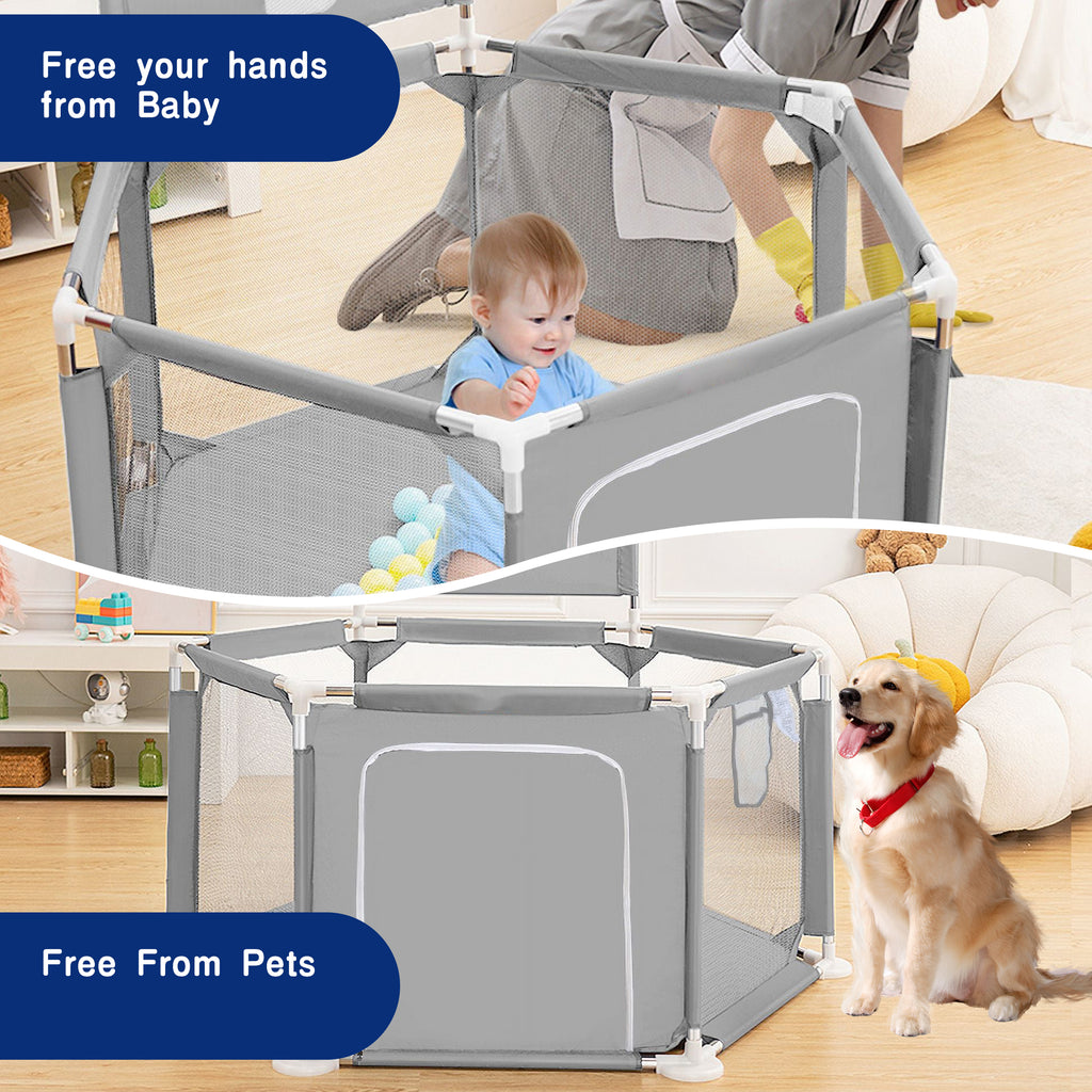 - 【Free Your Hands】The playpen creates a safe space for your baby to play and crawl inside the child safety enclosure. Parents can look after their babies directly outside the fence and do their chores or chat or gossip without worrying about their babies' safety! Baby's play centre! Release stress for parents!