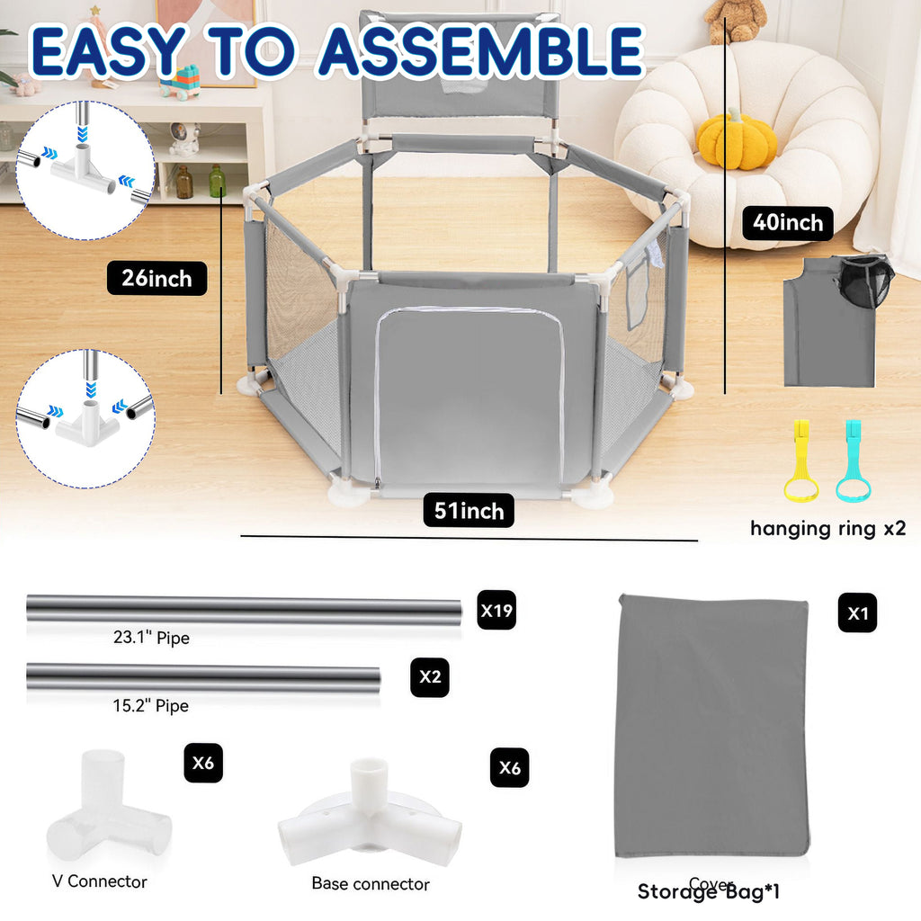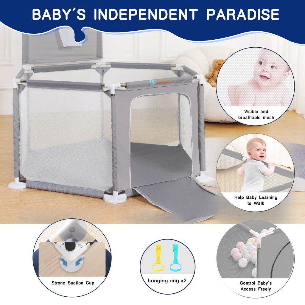 HioHa Baby Playpen, Baby Playard with Basketball Hoop, Portable Hexagon Play Yard Baby Fences for Infant Toddler