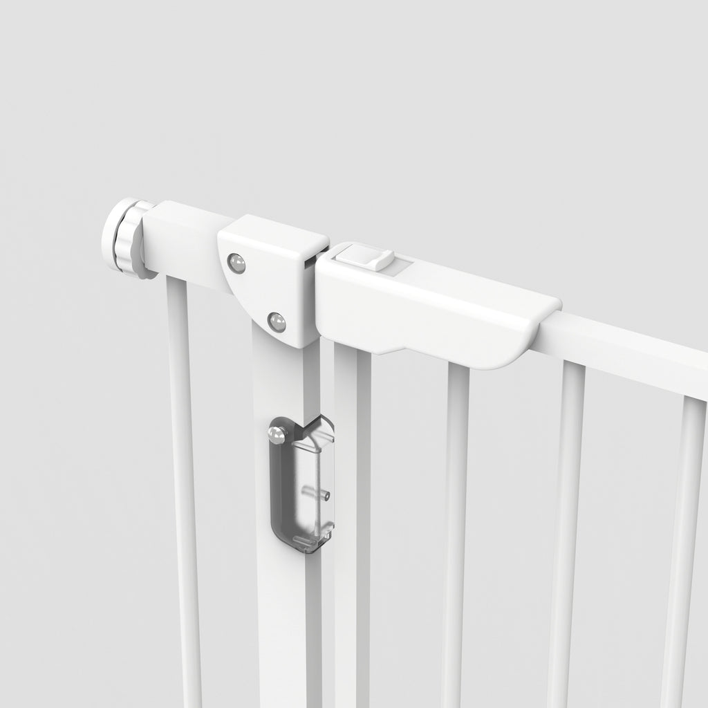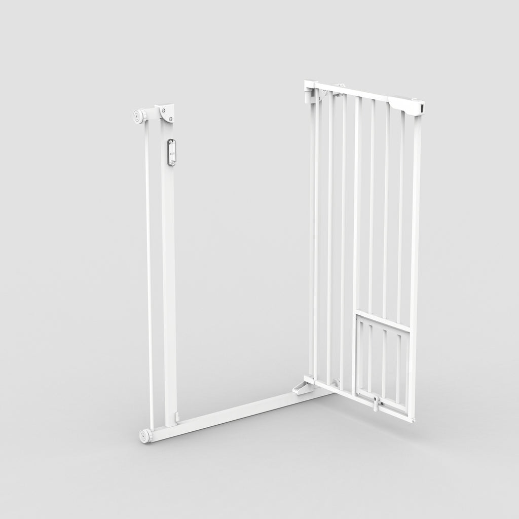 - 【Baby Safe】The sturdy child gate is made of high-quality steel and can withstand heavy impacts up to 210 pounds. In addition, the dog door's double-lock design prevents accidental opening by infants and pets, while providing ease of use for adults who can easily unlock and lift the door with one hand, even while holding an infant.