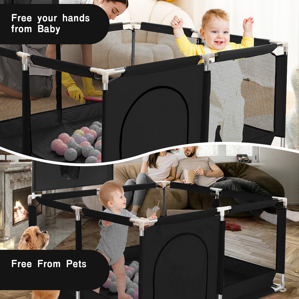 - 【Free Your Hands】The playpen creates a safe space for your baby to play and crawl inside the child safety enclosure. Parents can look after their babies directly outside the fence and do their chores or chat or gossip without worrying about their babies' safety! Baby's play centre! Release stress for parents!
