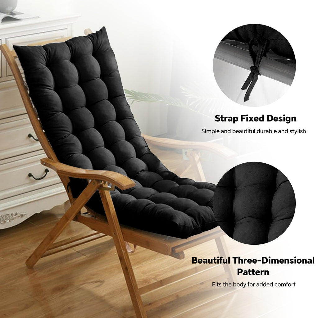 HioHa Rocking Chair Cushion, 49x19x3 inch Lounge Chaise Chair Cushion with Ties, Thickened Recliner Cushion Double-Sided Foldable(Black)