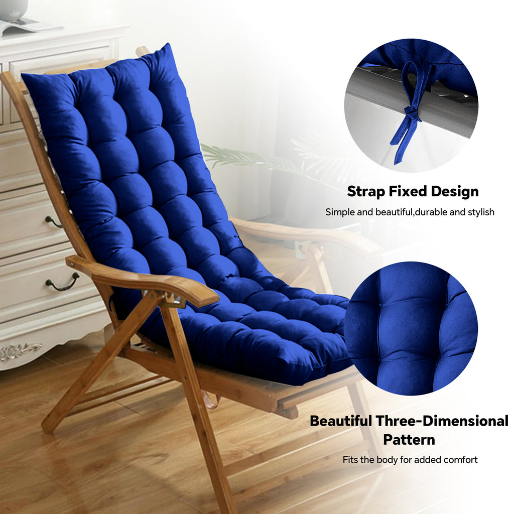 HioHa Rocking Chair Cushion, 49x19x3 inch Lounge Chaise Chair Cushion with Ties, Thickened Recliner Cushion Double-Sided Foldable(Blue)