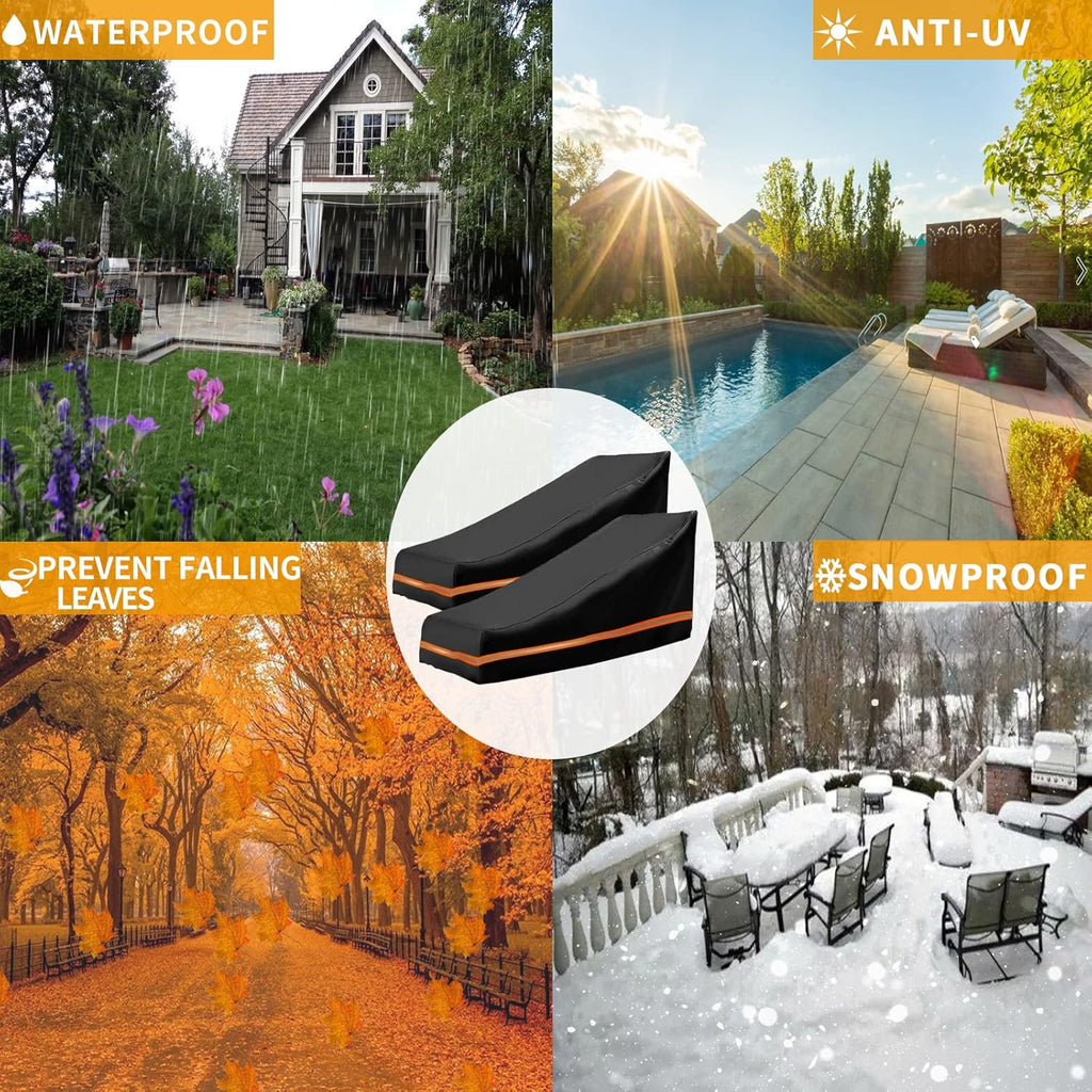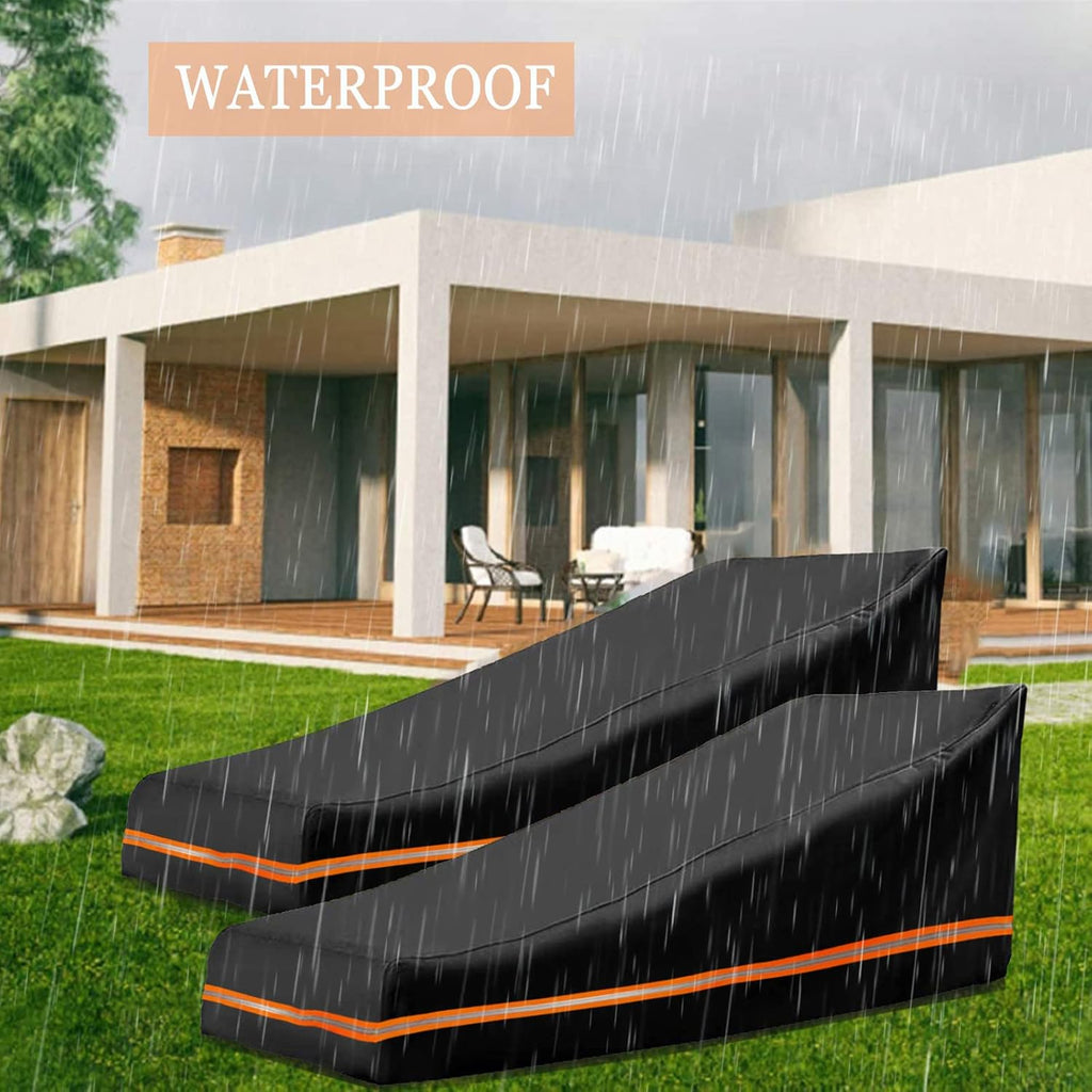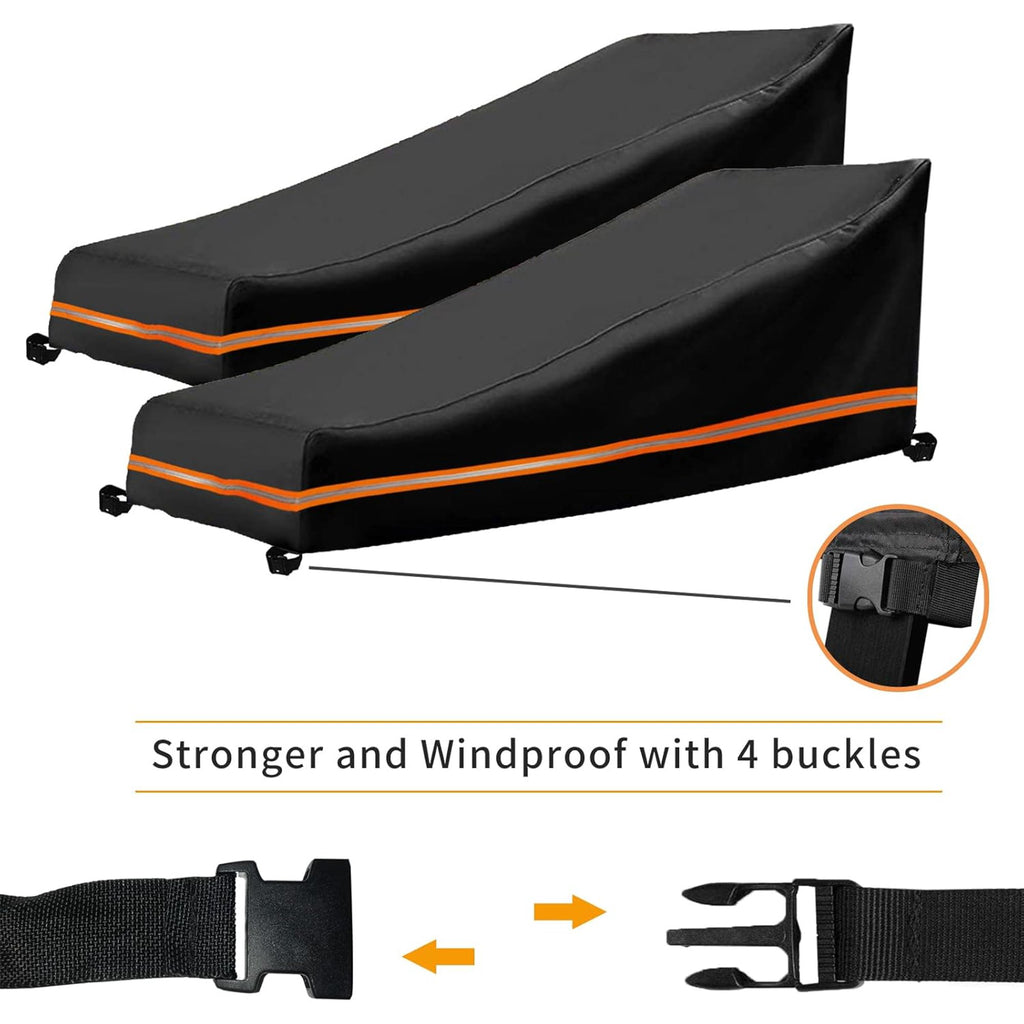 IMPROVED WATERPROOF: These outdoor chaise lounge covers are made of 600D Oxford fabric to provide better waterproof performance. Repels rainwater without seeping into your furniture. And waterproof strips are added to prevent water from entering along the seam lines.WIND-PROOF: LCGOD furniture covers are designed with adjustable buckles that attach to all four furniture legs and drawstrings at the bottom for a customized fit that prevents strong winds from blowing them away.