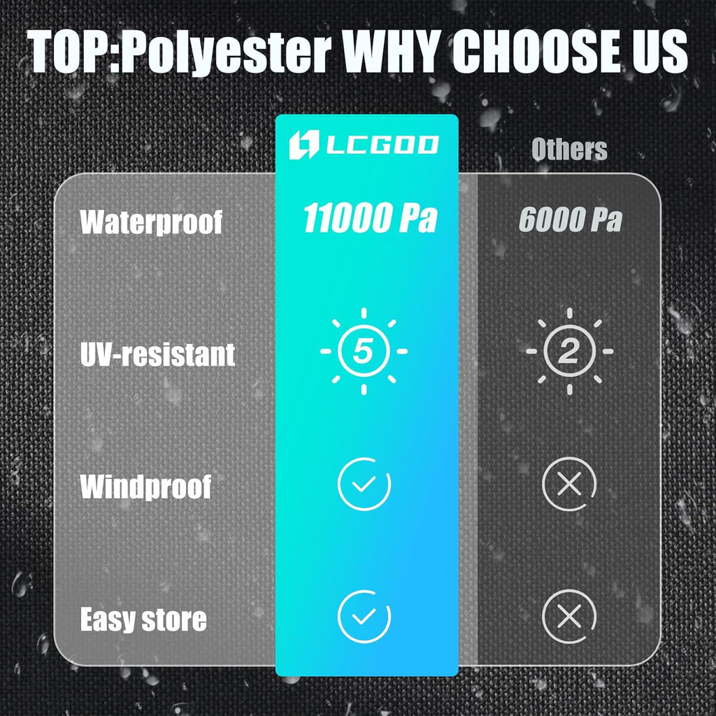 【Waterproof & Windproof】The LCGOD BBQ grill cover is made of sturdy, heavy-duty material. It also features double rubberized edges and double rows of stitching with a tightenable fabric hook and loop strap for a perfect fit on the grill. These features make it more water and wind resistant. We don't have to worry about the grill cover blowing away in strong winds.