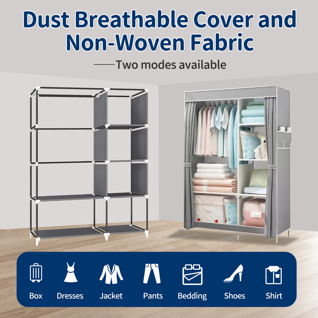 - 【Space-saving Cloth Wardrobe】The wardrobe closet is provides spacious storage space and strong load capacity. That creates a spacious space for for bedroom, cloakroom, clothing store, laundry room, to meet your long term and all aspect storage need.