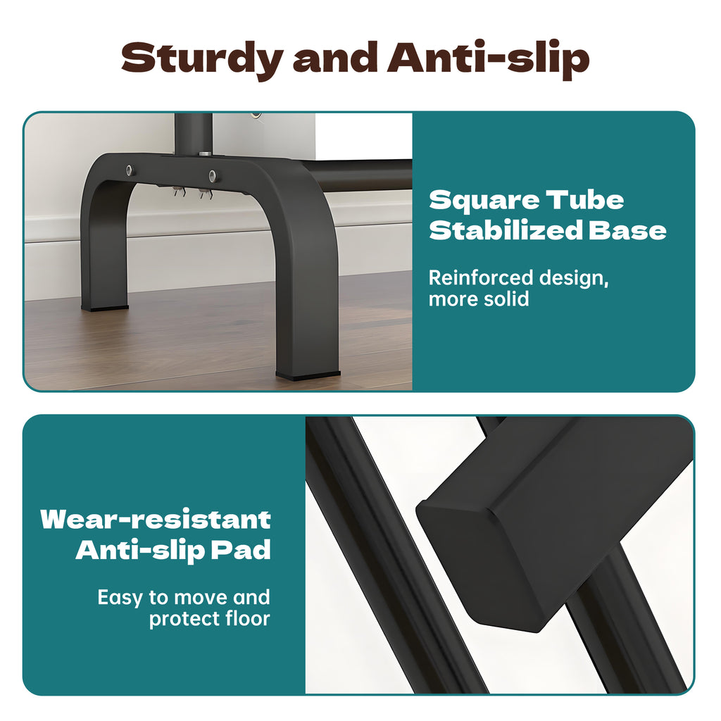 - 【Stability & Durability】The main material of the hanging rack is high-quality steel, with excellent load-bearing capacity, suitable for multiple pieces of clothing hanging at the same time. The square tube stabilizing base design enhances the stability of the clothes rack, even under heavy loads, it can remain firm and unshakeable.