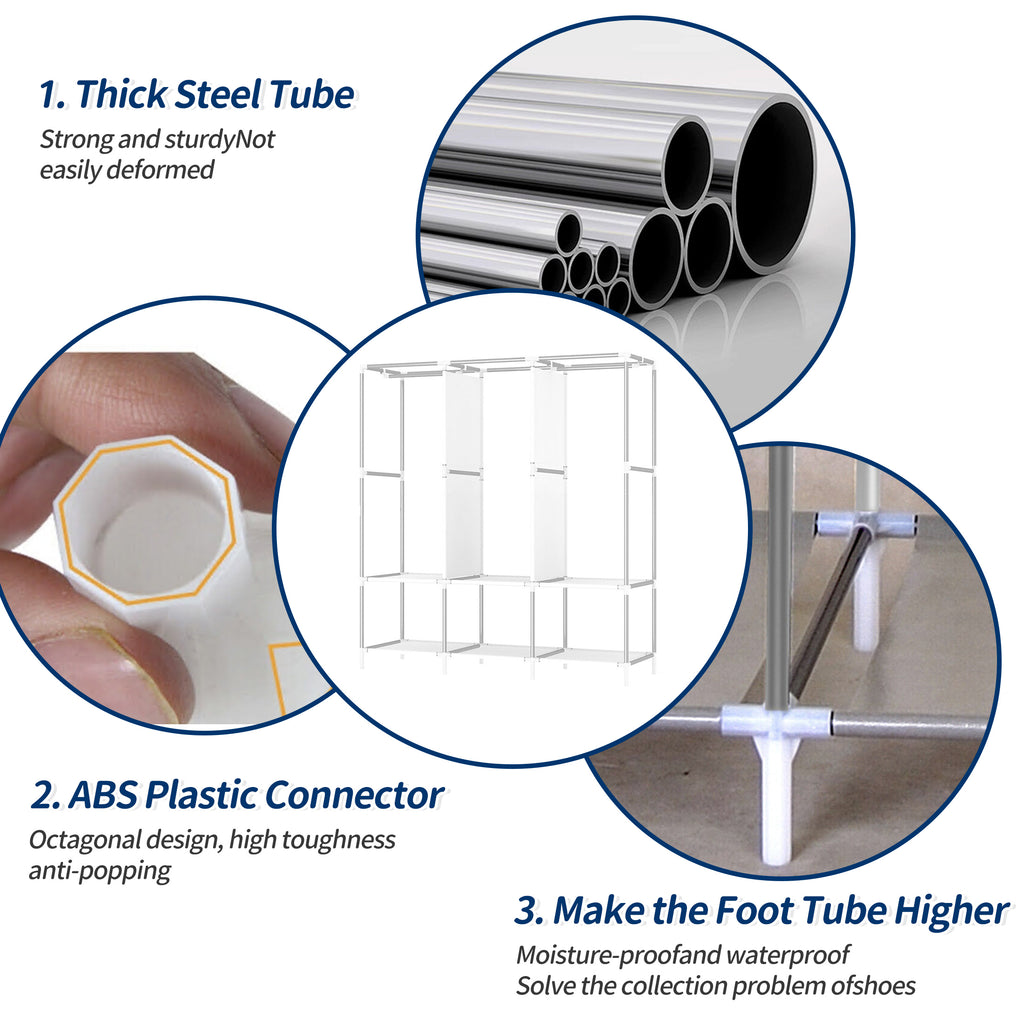 【Sturdy Construction】The clothes closet for hanging clothes is selected by sturdy non-woven fabric and high quality zipper, made of strong thickened steel tube and strengthened PP plastic connectors, so it provides super load capability to ensure sturdier and more stable, not be bent easily, will prove to be sturdy and works for years.