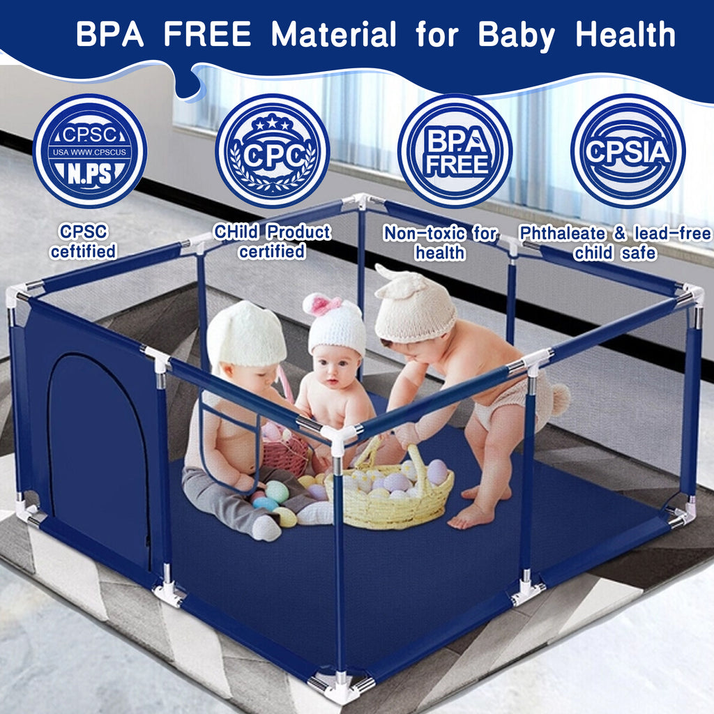 Baby Playpen, Outdoor Play Yard, Portable Play Yard 4-Panel- Baby Safety Playpen for Infant Toddler Blue