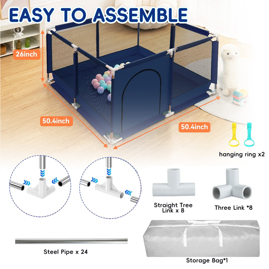 - 【Easy to Assemble and Carry】The baby fence is very easy to install and carry, no tools required, easy to assemble in just 10 minutes according to the instructions. You can use it in parks, beaches, lawns and many other places indoors and outdoors. When not in use, our playpen can also be stored in a space-saving bag.