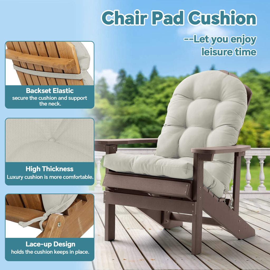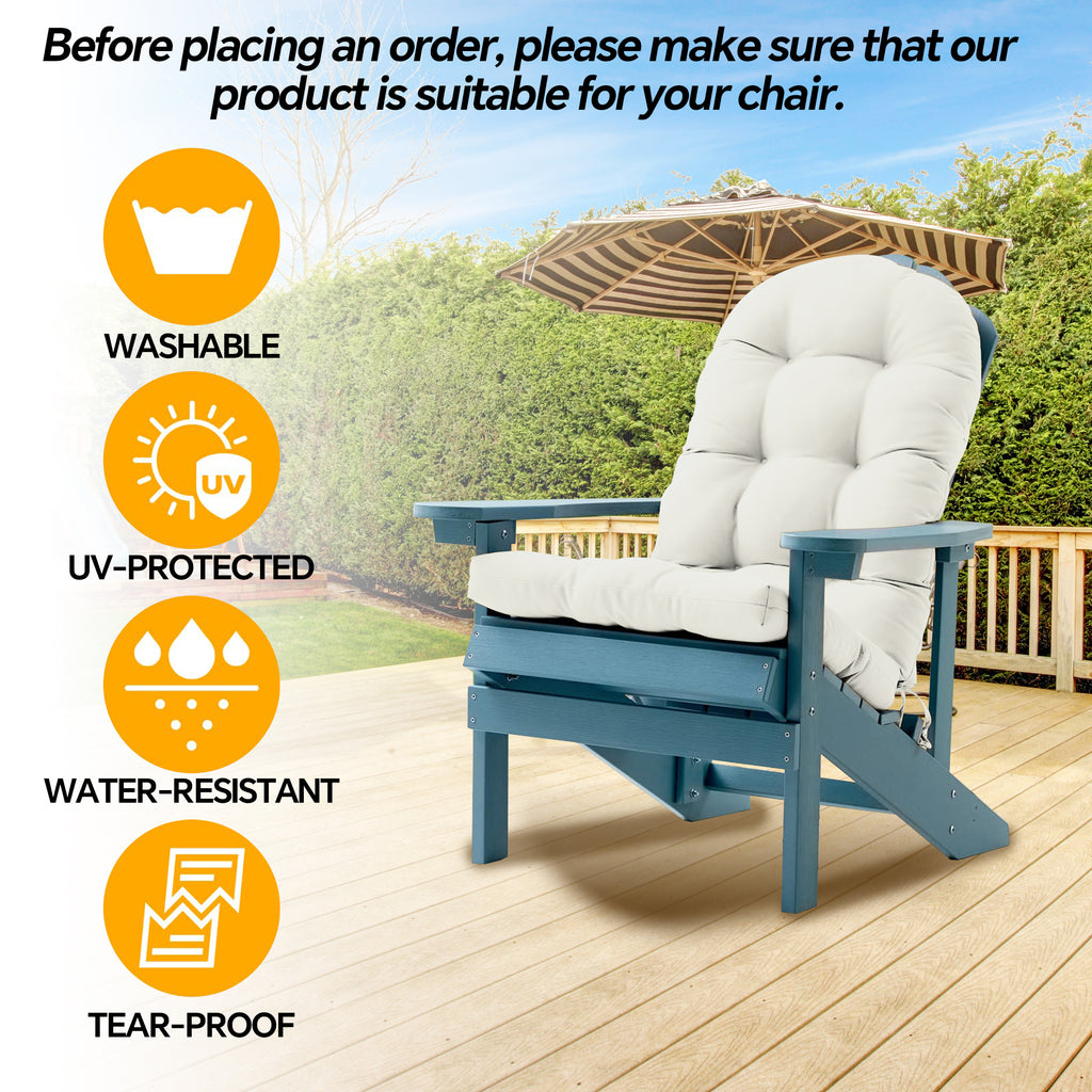 【High Quality Material】The HioHa Adirondack chair cushion is filled with soft polyfiber which has good rebound effect, and covered the durable polyester fabric. The high thickness and softness is not easy to deformed. Super comfortable highbacked cushion keep you comfort and relax all day.