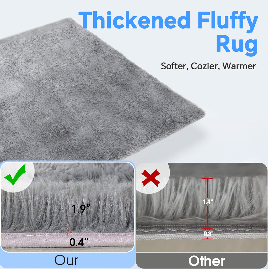 - 【Easy To Clean】Our furry rug is so soft and easy to clean, for the dirt on the surface of the floor rug you only need to clean it with a vacuum cleaner, then hand wash the deep dirt with mild cold water, after that dry it naturally; This rugs are not easy to shed or fade, can serve you for a long time