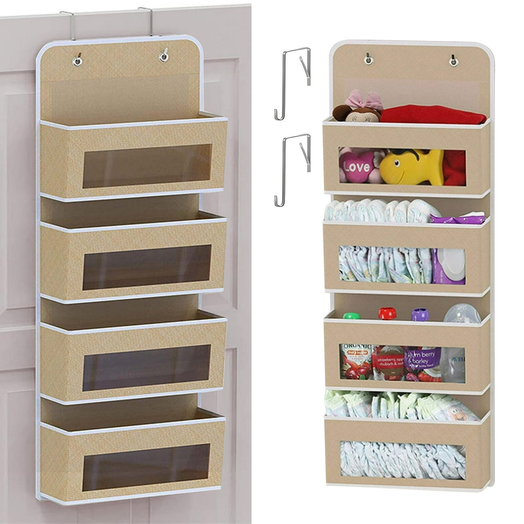 HioHa Over the Door Organizer, 4-Tier Hanging Closet Bathroom Storage with 6 Mesh Side Pockets, Wall Mount Toy Stuffed Animal Storage for Baby Essentials, Nursery, Bedroom, Bathroom, Dorm