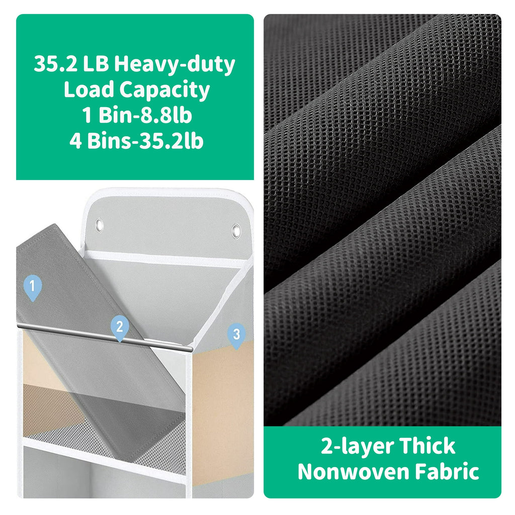 - 【Durable Material】The hanging closet organizer is made of high quality and durable non-woven fabric for superior durability and moisture resistance. Features fully sealed side seams, built-in side cardboard to prevent sagging and tilting, making the pocket stronger and more stable. The rear support bar is made of fiberglass and prevents the door-mounted organizer from deforming when carrying heavy loads.