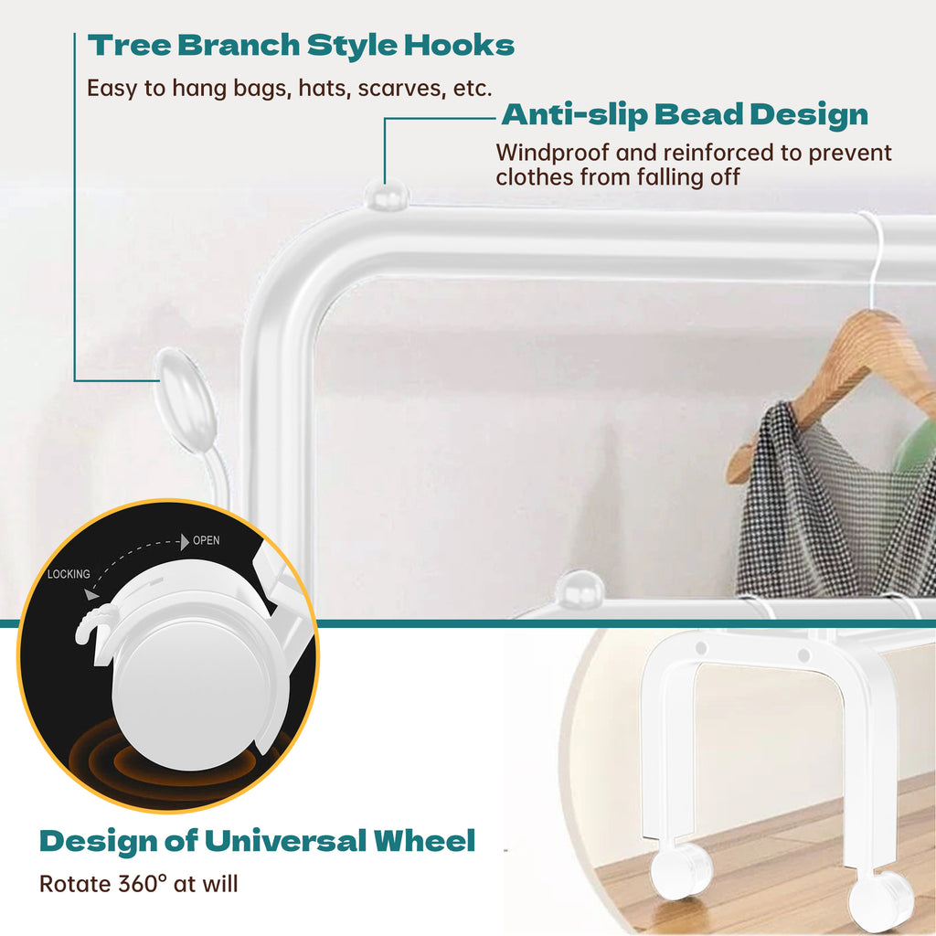 - 【Aesthetics & Safety】The garment rack is fitted with four anti-slip beads at the top, which not only effectively prevents clothes from slipping off, but also adds to the aesthetics of the clothing rack, making it an elegant addition to the interior. The surface of the rack is coated with an eco-friendly paint layer, which not only prevents the rack from rusting, but also this coating is environmentally friendly and ensures home safety.