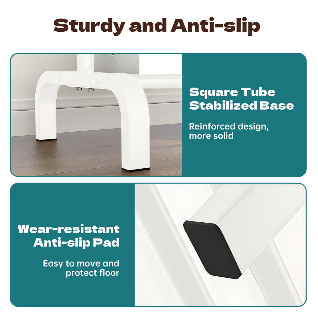 【Stability & Durability】The main material of the hanging rack is high-quality steel, with excellent load-bearing capacity, suitable for multiple pieces of clothing hanging at the same time. The square tube stabilizing base design enhances the stability of the clothes rack, even under heavy loads, it can remain firm and unshakeable.