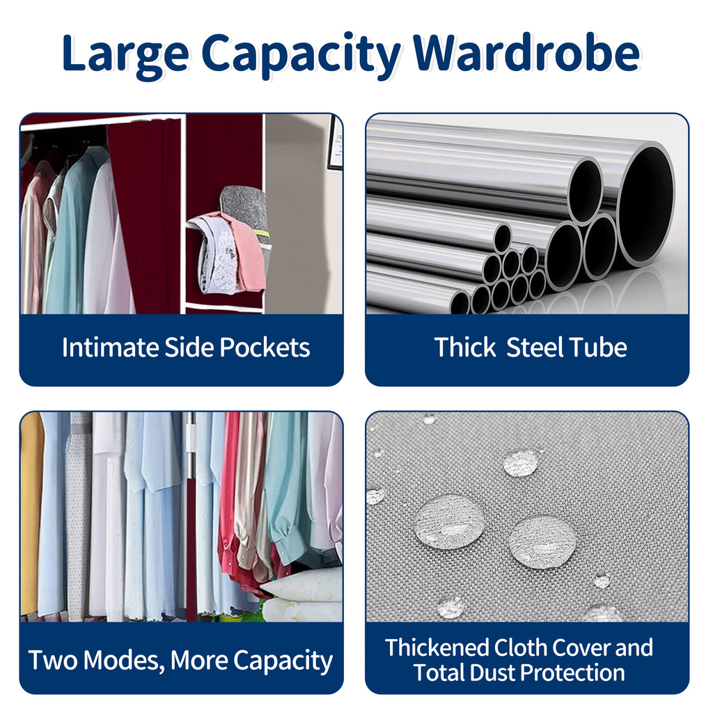 - 【Space-saving Cloth Wardrobe】The wardrobe closet is provides spacious storage space and strong load capacity. That creates a spacious space for for bedroom, cloakroom, clothing store, laundry room, to meet your long term and all aspect storage need.