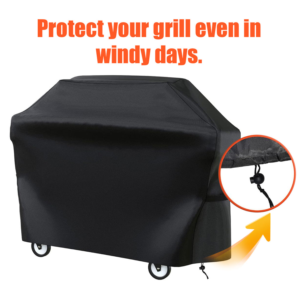 - 【Waterproof & Windproof】The LCGOD BBQ grill cover is made of sturdy, heavy-duty material. It also features double rubberized edges and double rows of stitching with a tightenable fabric hook and loop strap for a perfect fit on the grill. These features make it more water and wind resistant. We don't have to worry about the grill cover blowing away in strong winds.